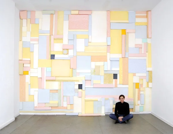German artist Katja Windau created a wall installation using foam offcuts from furniture production. The pastel coloured pieces were arranged in a grid-like formation yet the varying colours and shapes make it perfectly irregular.